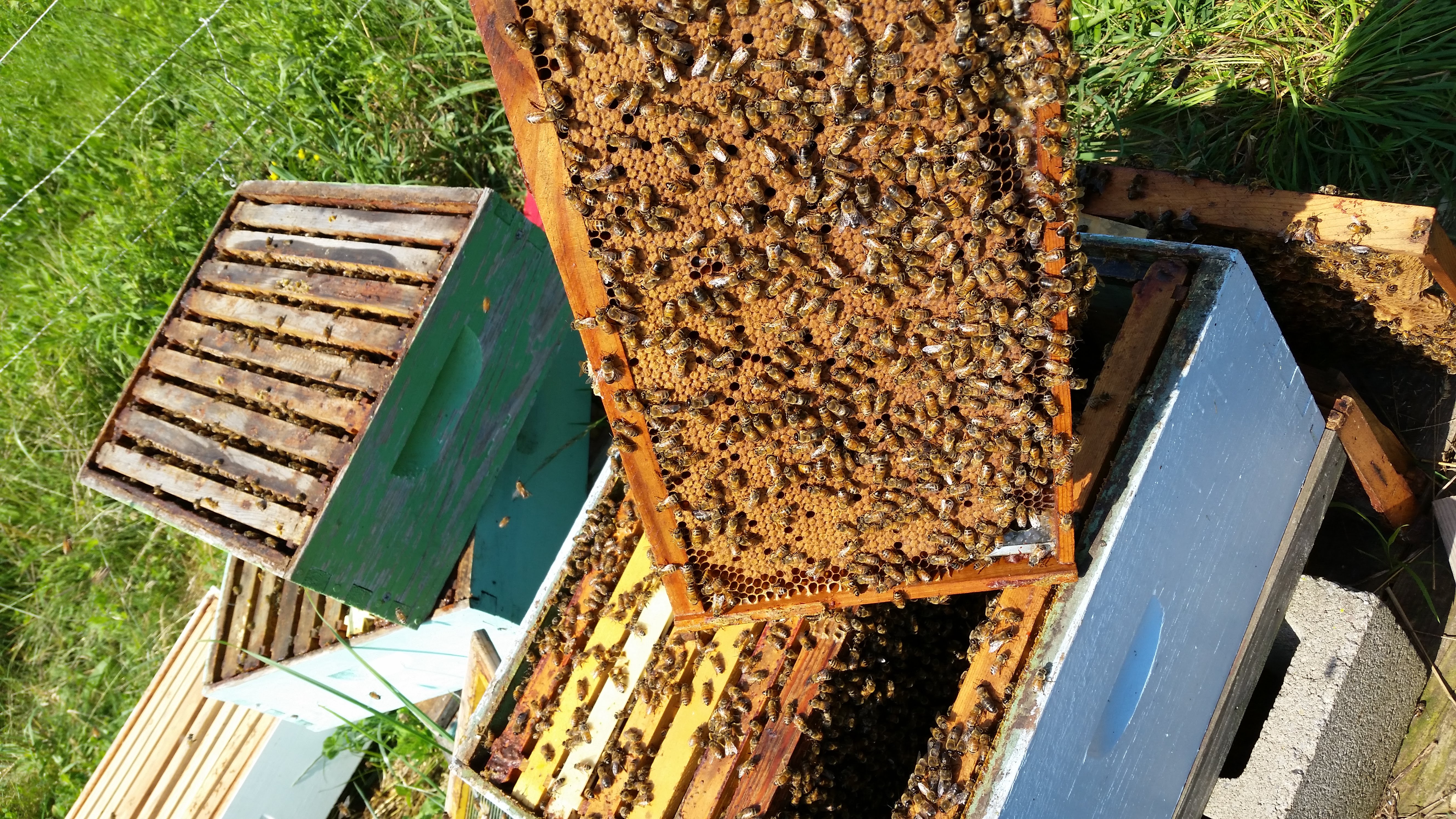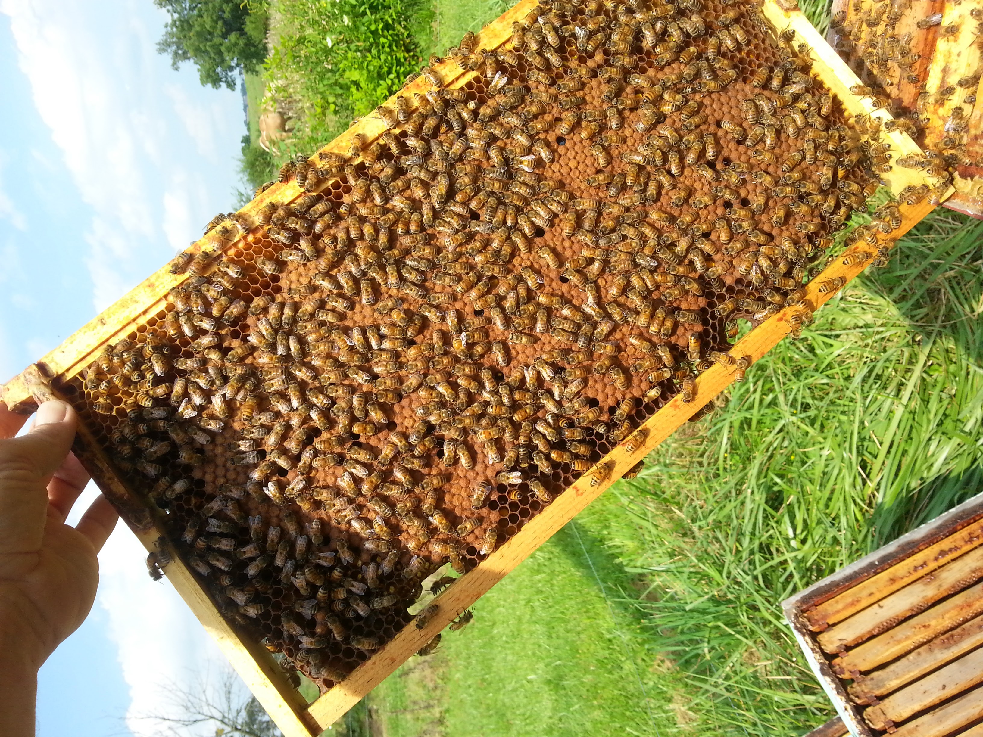 Our honey comes exclusively from our own bees which are raised on our farm. We don't move hives for pollination, we don't buy in bees, and we don't buy honey to resell. This means we know that our bees and honey are pure. We care for our hives with traditional methods that do not rely on chemicals to treat bees for challenges such as varroa mites. Since we know that conventional fungicides and pesticides can cause harm to pollinators, we manage our pastures and orchards organically