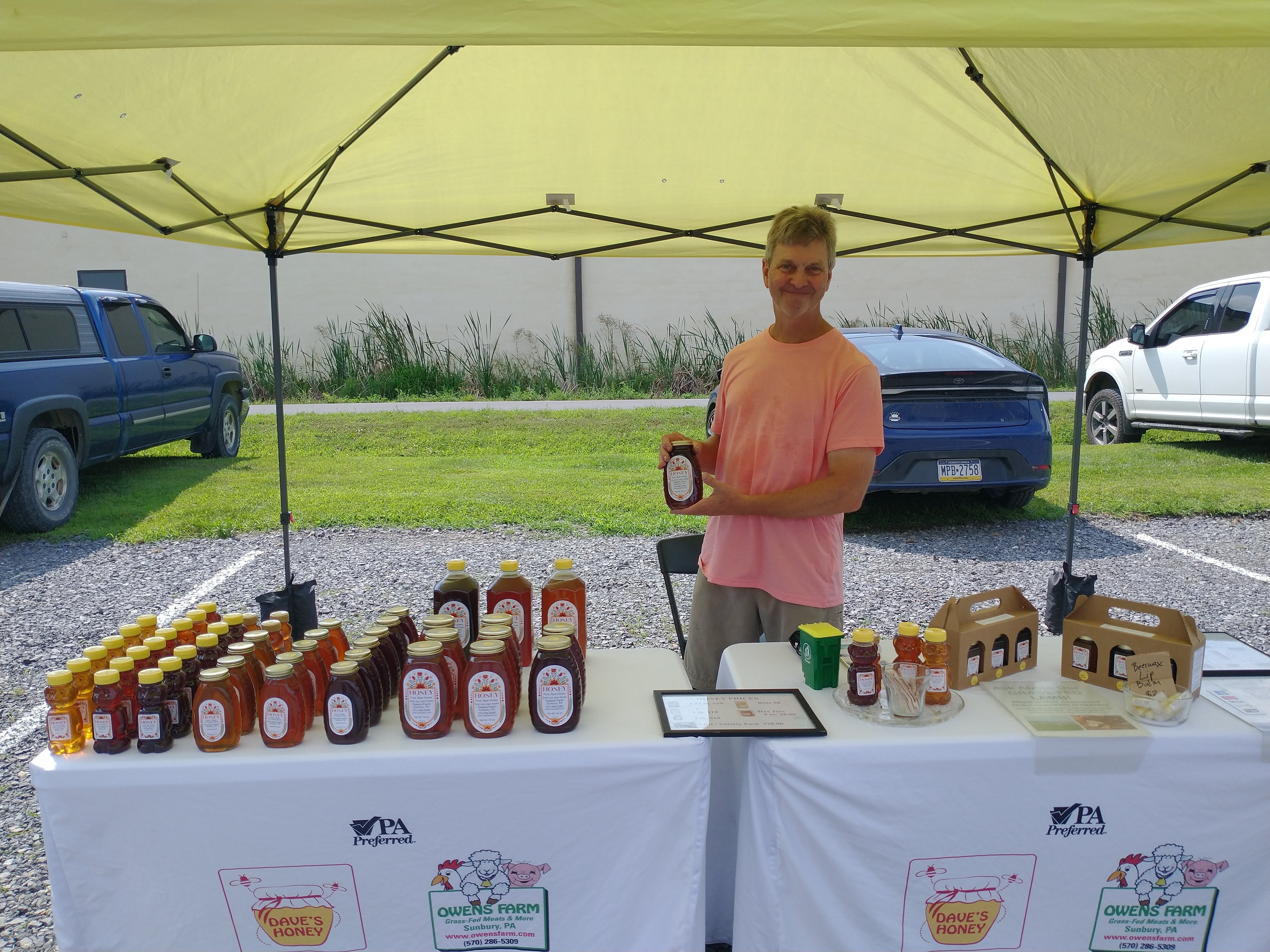 Find Dave and his honey, candles, and soap at Susquehanna Valley Growers Market (Hufnagle Park, Fridays 2 to 6) and Elysburg Farmers Market (Saturdays 8 to 12)
