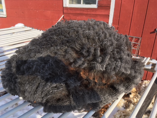 We shear 6 weeks before lambing, to avoid the weak point in the fiber created by the nutritional demands of late pregnancy.