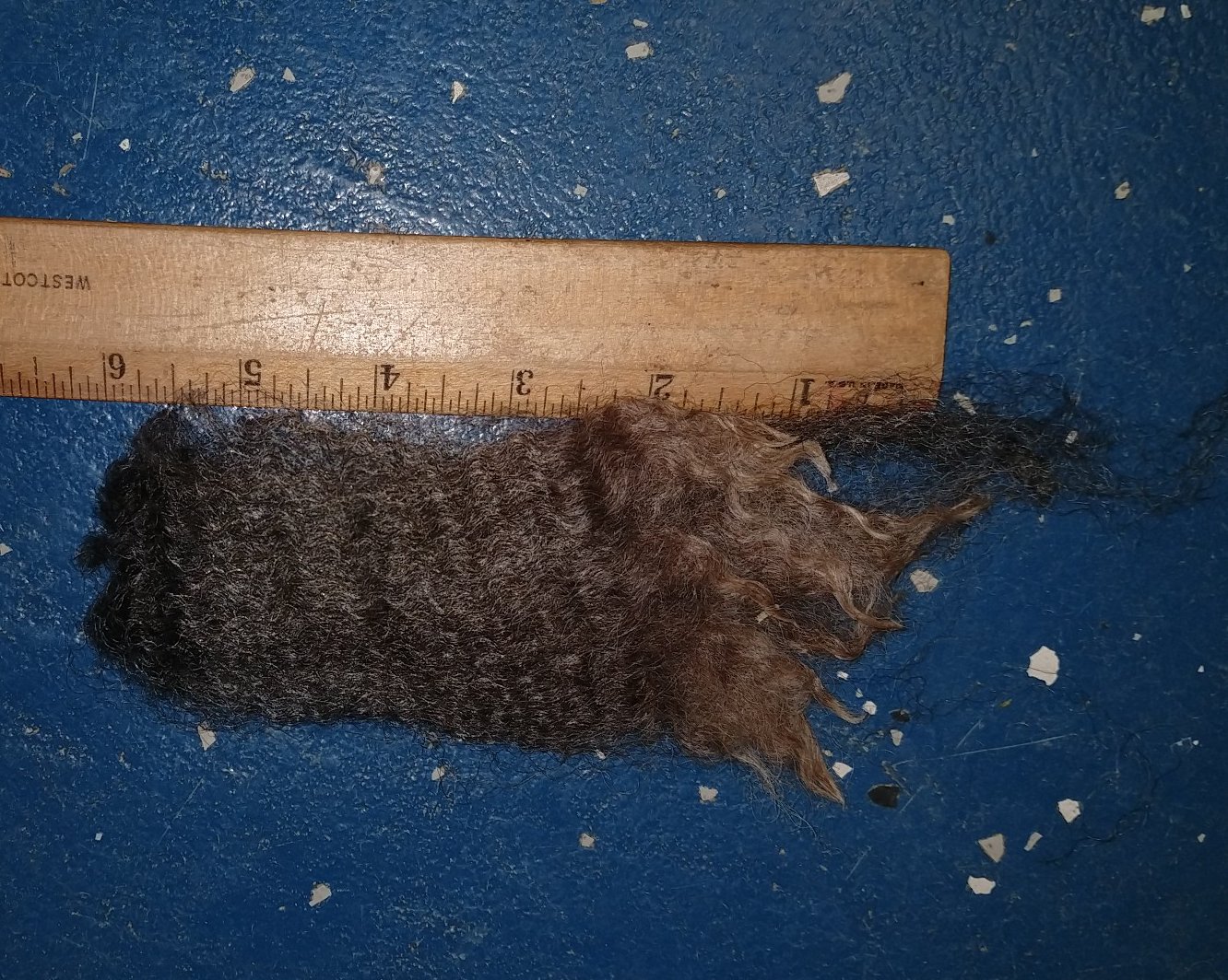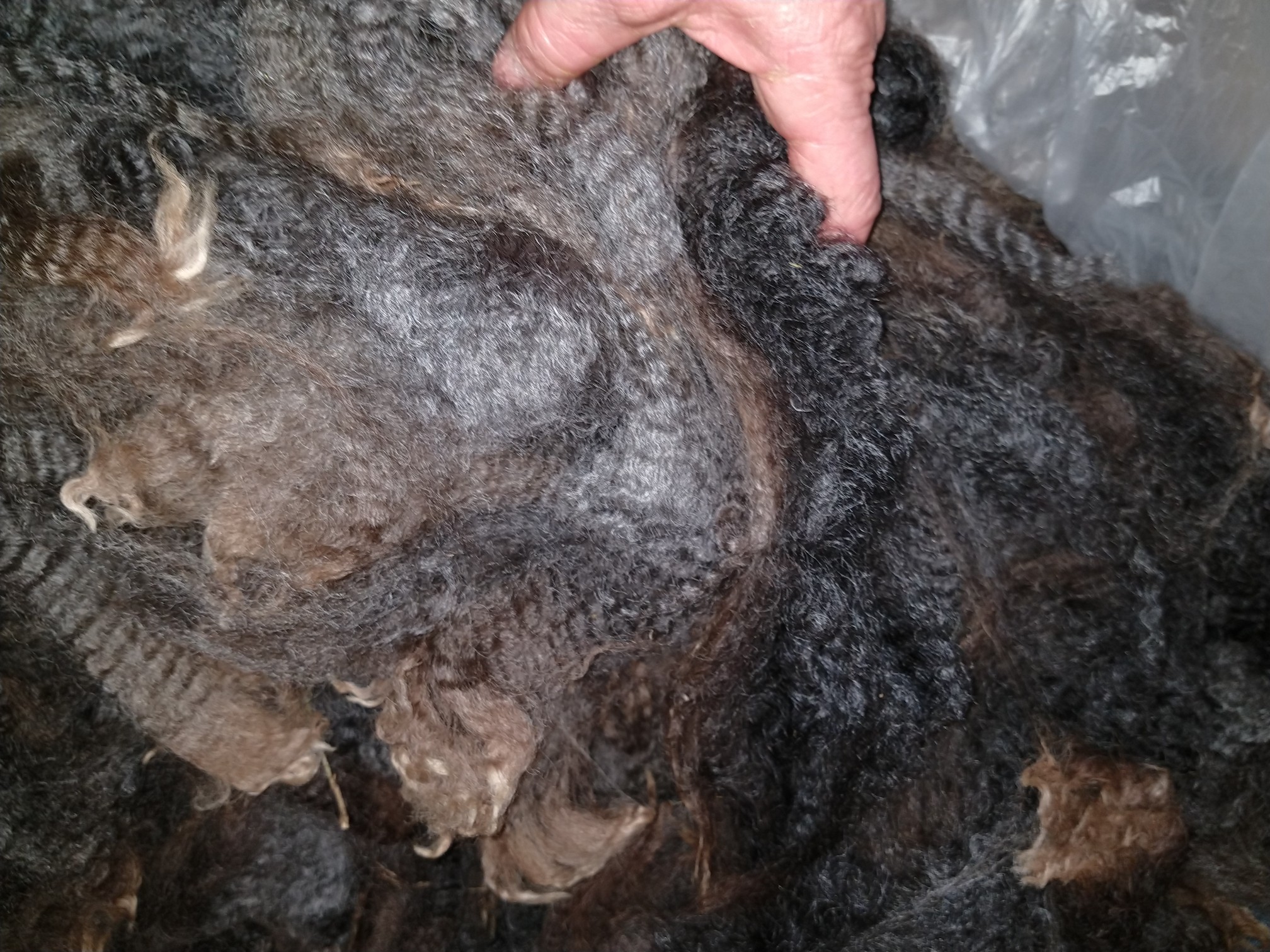 Luscious silver-gray fleece with chestnut tips, this will make a gorgeous blend. Locks are 4.5 inches with a tight, well-defined crimp, and the soft hand Coopworth is known for.