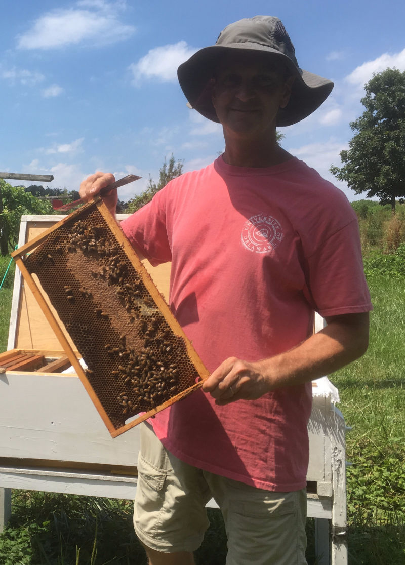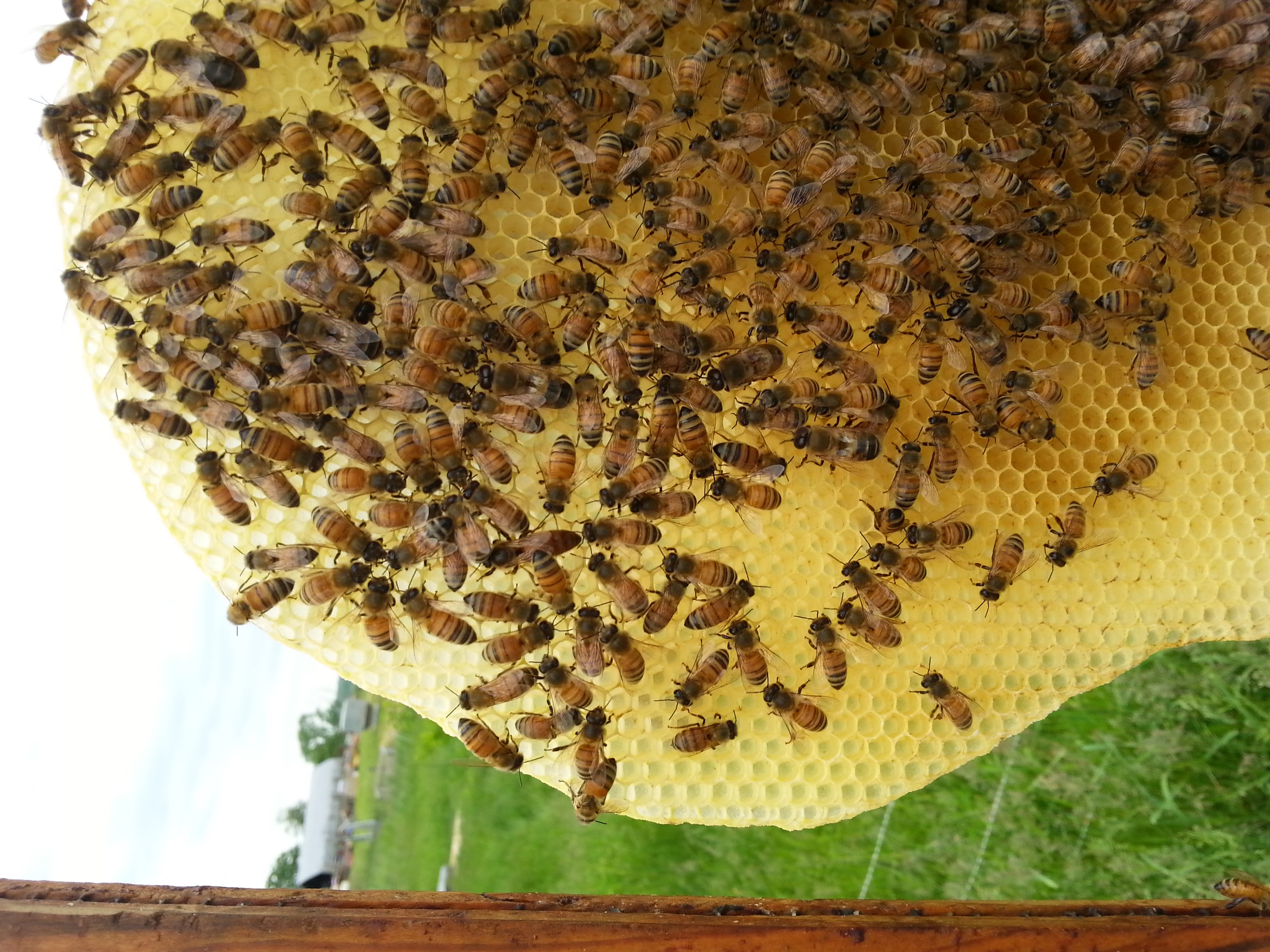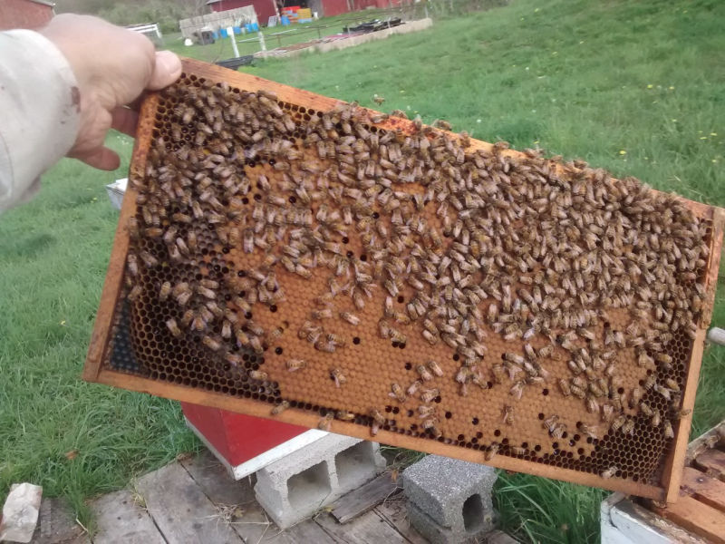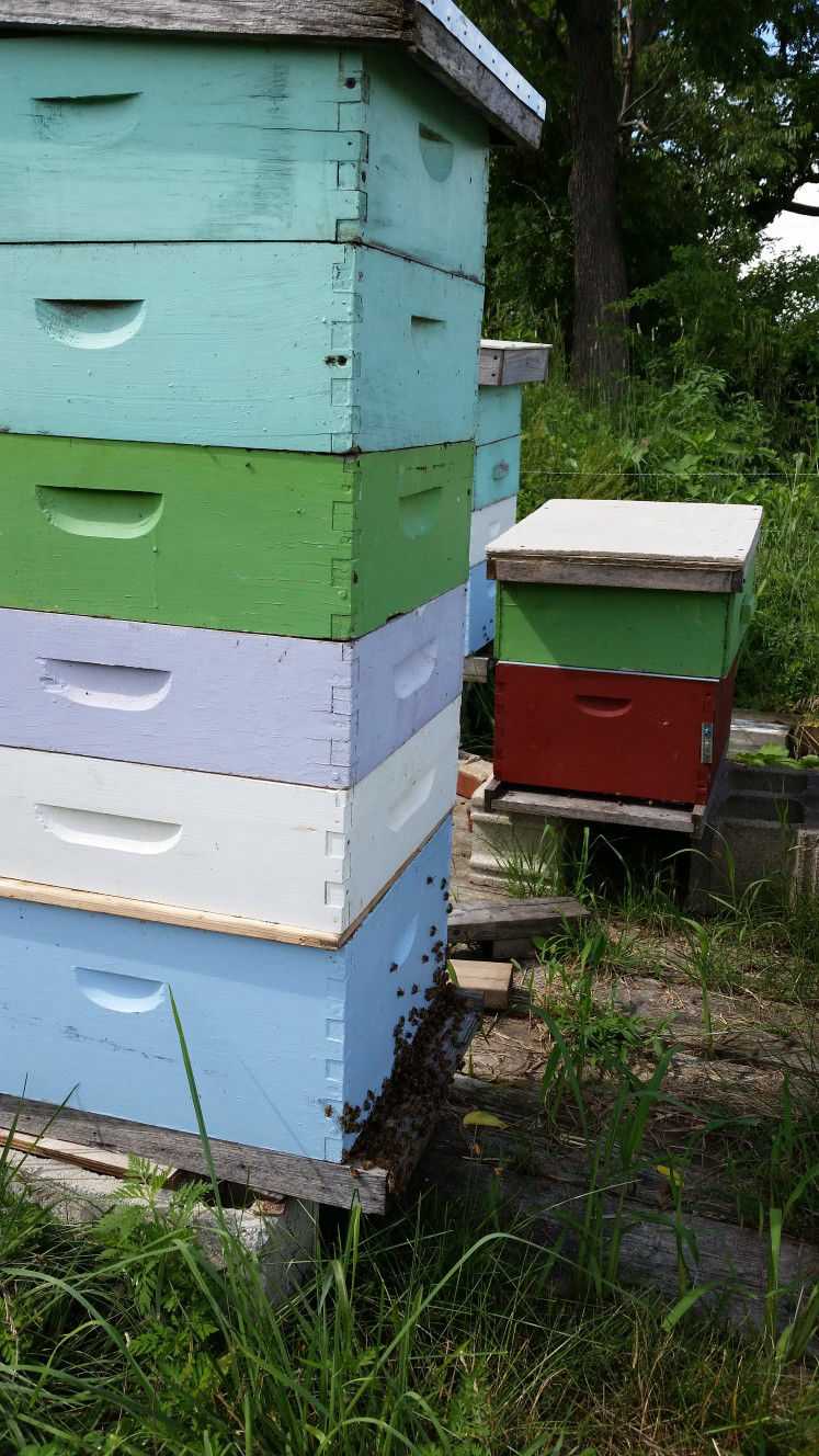 Our honey comes exclusively from our own bees which are raised on our farm. We don't move hives for pollination, we don't buy in bees, and we don't buy honey to resell. This means we know that our bees and honey are pure. We care for our hives with traditional methods that do not rely on chemicals to treat bees for challenges such as varroa mites. Since we know that conventional fungicides and pesticides can cause harm to pollinators, we manage our pastures and orchards organically