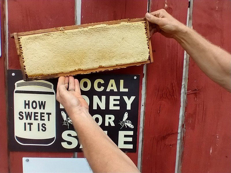 Raw Honey, beeswax, 100% beeswax candles, lip balm, and other products are available at our self-service farmstand.