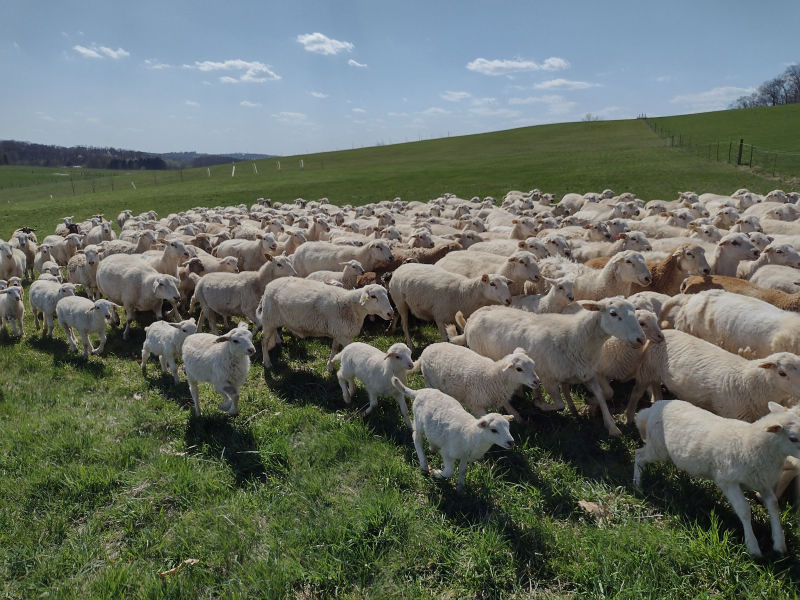 Born in spring and ready to eat in October/November. Available as custom-cut half or whole, with a $35 deposit to hold your order. The price is $9.25 per pound of hanging weight, and includes all processing costs. Our lambs average 42-48 lbs hanging weight, so this works out to about $380 for a whole or $190 for a half. Final balance depends on the exact weight of your exact lamb.